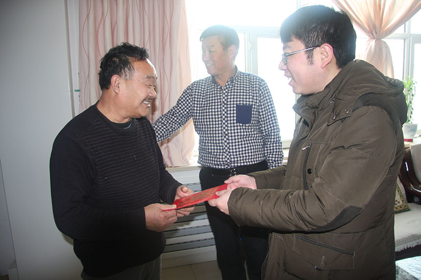 (本報(bào)訊:)愈近春節(jié),年味愈濃。在舊歷馬年即將過(guò)去,猴年即將到來(lái)的辭舊迎新之際,也是一年中最冷的時(shí)候,1月26日、27日,集團(tuán)公司總經(jīng)理彭超偕同監(jiān)事會(huì)主席于兆全、副總經(jīng)理蘇曉海,集團(tuán)董事鄭玉元等領(lǐng)導(dǎo)冒著零下22°的嚴(yán)寒,帶著集團(tuán)的問(wèn)候挨家挨戶(hù)走訪(fǎng)慰問(wèn)了85名老股東。